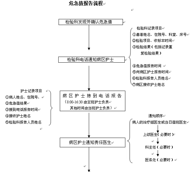 4、檢驗科、護理部、醫(yī)務(wù)處分別制定相應(yīng)的危急值處理程序,危急值項目的標(biāo)準(zhǔn)操作規(guī)程和危急值報告登記制度等。 檢驗地帶網(wǎng)